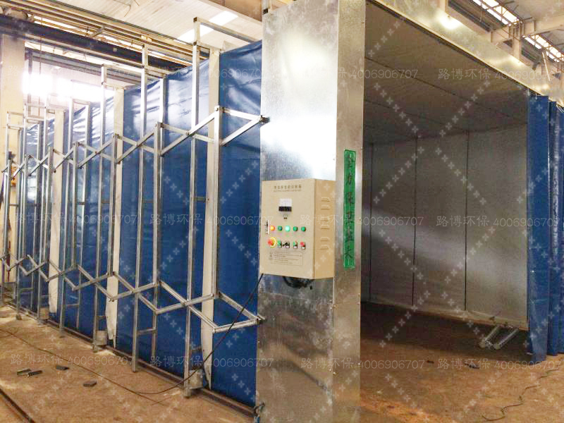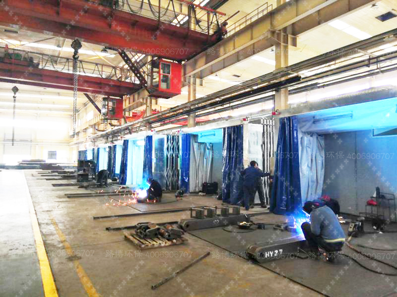 近幾年,機(jī)械制造行業(yè)在市場需求的推動下整體保持持續(xù)增長態(tài)勢,西安某知名煤礦機(jī)械有限公司是以機(jī)械制造加工為主的綜合性煤礦機(jī)械企業(yè),煙氣粉塵的主要來源于車間焊接煙氣粉塵的車間排放,車間需除塵區(qū)域共1跨5柱距(柱距9米)內(nèi)且煙氣粉塵量較大,青島路博環(huán)保結(jié)合用戶現(xiàn)場工況及需求將除塵區(qū)域設(shè)計(jì)劃分為7個(gè)工位,每個(gè)工位單獨(dú)采用一套伸縮房(7m*5m*3m)機(jī)構(gòu)對煙塵進(jìn)行收集。