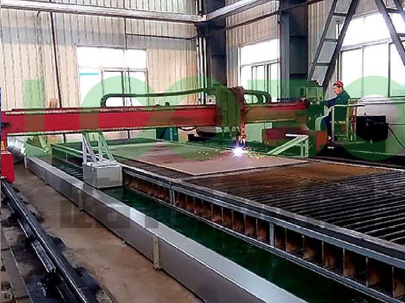 風門式切割平臺一側設有方形吸風道另一側設有吸風風機,在其上方安裝可以與切割機聯動的吸風小車,鋼板切割作業時,吹風風機將切割產生的煙塵通過由切割平臺上的格柵板與被切割鋼板形成的“煙氣通道”吹向吸風小車吸風口,進入吸氣方形風道,末后通過除塵器主機進行切割煙塵凈化處理。
