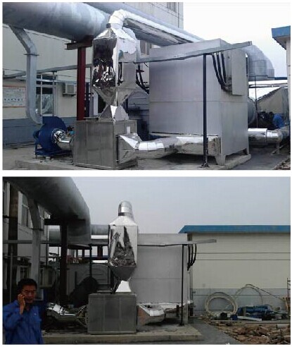 2、如果是成分特別復雜的工業有機廢氣,處理的方式為:“吸附+脫附+催化燃燒”工藝。經過催化燃燒后的有機廢氣轉化為二氧化碳和水直接排放,工藝簡單而且處理效果好,催化燃燒后的預熱可以再利用。