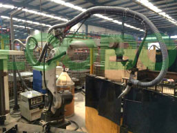 隨著先進制造技術的發展,實現焊接產品制作的自動化、柔性化和智能化已成為必然趨勢。目前,采用機器人焊接已成為焊接自動化技術現代化的主要標志。焊接機器人由于具有通用性強、工作可靠的優點,受到了人們越來越多的重視。由于焊接機器人焊槍工作路徑為編程控制,根據工件不同其焊槍工作路徑不固定,且工作時焊槍行走跨度較大,使得焊接機器人的焊煙治理較為麻煩。