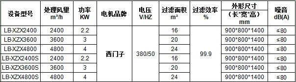 四、LB-XZX移動式焊煙凈化器設備參數(shù):
