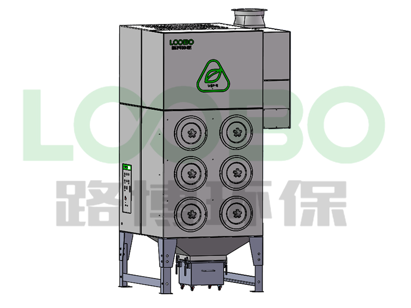 內設高精度濾筒過濾單元,專用于整個車間多個焊接工位產生煙塵的收集凈化。在離心風機負壓吸入的作用下,經過前端阻火裝置后,煙塵通過風管收集進入過濾器,經過濾筒充分過濾,凈化后的空氣可達標排放至室外或直接進入室內循環。隨著過濾工況持續,聚集在濾筒表面的粉塵增多,此時脈沖控制儀按設定的脈沖周期和脈沖間隔控制電磁閥開啟,噴出高壓氣體,吹入濾筒內腔,抖落外表積塵,落入灰斗,經集灰盒排出。