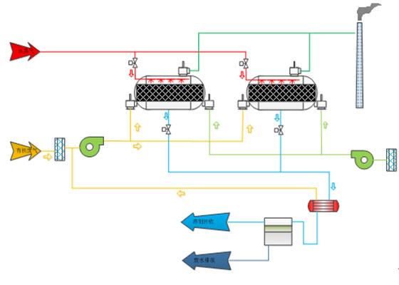 如果采用吸附回收方式,則通過吸附后的有機廢氣可以達標排放,同時經過冷凝回收的高價值的有機溶劑可以循環利用與生產線,具有很大的經濟效益。